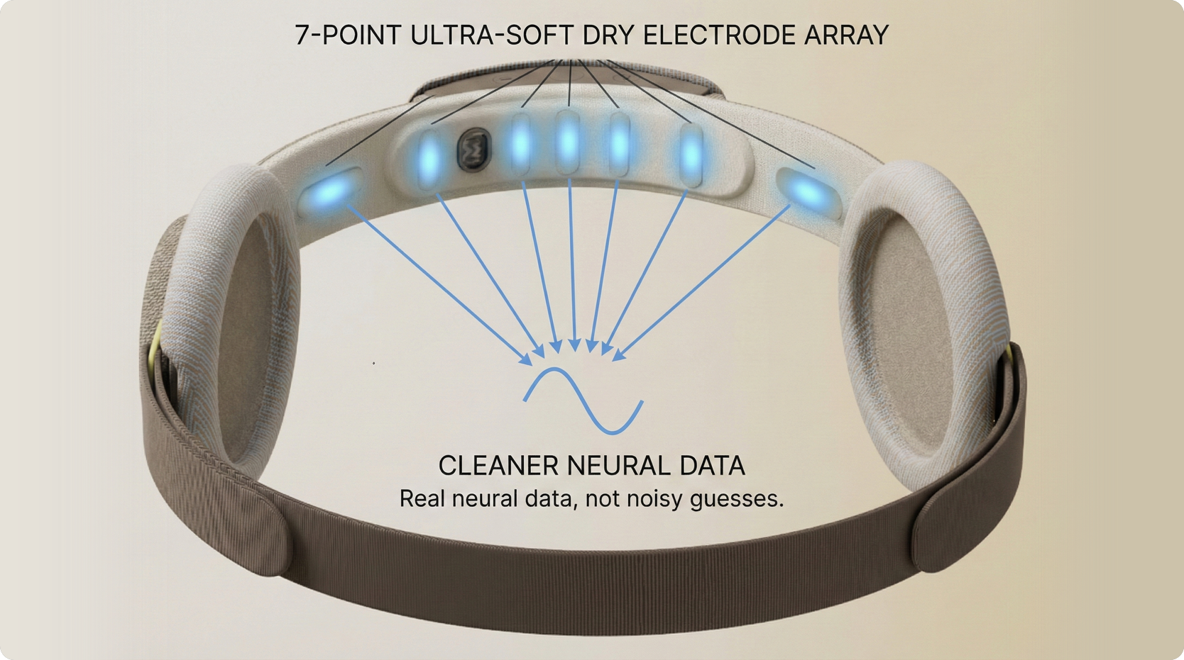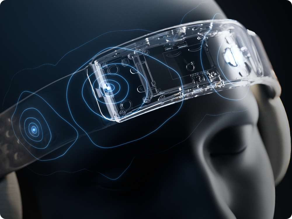 The LumiSleep headband features 7 ultra-soft dry electrodes. It captures stable, lab-grade EEG signals from the prefrontal cortex all night without adhesives, ensuring both comfort and the accuracy required for real-time feedback algorithms.